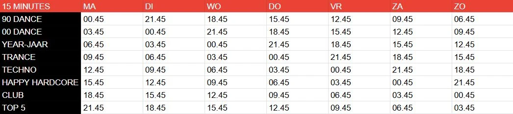 15 minuten lang, 5 dancetracks lang - Alleen powertracks uit een bepaald jaar.